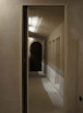 Aus dem ortstypischen Sandstein "Marés de Santanyí“ werden Treppe, Kamin und Wandleuchten gearbeitet – der Zementboden und die rauh verputzten Wände haben eine fast identische Struktur und gehen farblich in den Naturstein über. So fließen die kleinen Räume in gleichbleibender Materialität zusammen und bilden einen zurückgenommenen, ruhigen Innenraum.