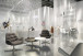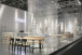 Daniel Schöning übersetzt dieses Leitbild in eine räumliche Inszenierung, die auf Rohheit und Materialehrlichkeit setzt. Spiegelnde Aluminiumbleche und halbtransparente Wände aus Streckmetall schaffen eine vielschichtige, fast sphärische Atmosphäre. Durch Spiegelungen und Durchlässigkeiten wird der Raum selbst zum Medium der Kommunikation – offen, wandelbar, interpretierbar.