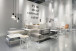 Die Möbel werden dabei nicht in simulierten Büroszenarien präsentiert, sondern in einer abstrahierten, atmosphärischen Umgebung, die ihre Form, Materialität und Geschichte betont. Zwei hohe Regale aus Stahlrohr an den Schmalseiten des Standes verweisen auf die Bauhaus-Ära, in der Thonet mit der Einführung des Stahlrohrmöbels Designgeschichte schrieb. So verbindet der Entwurf Vergangenheit und Gegenwart: Die Idee des Kaffeehauses als Ort des Austauschs und der Inspiration wird in die Gegenwart der neuen Arbeitswelten übertragen – in ein Raumkonzept, das Kommunikation sichtbar und spürbar macht.